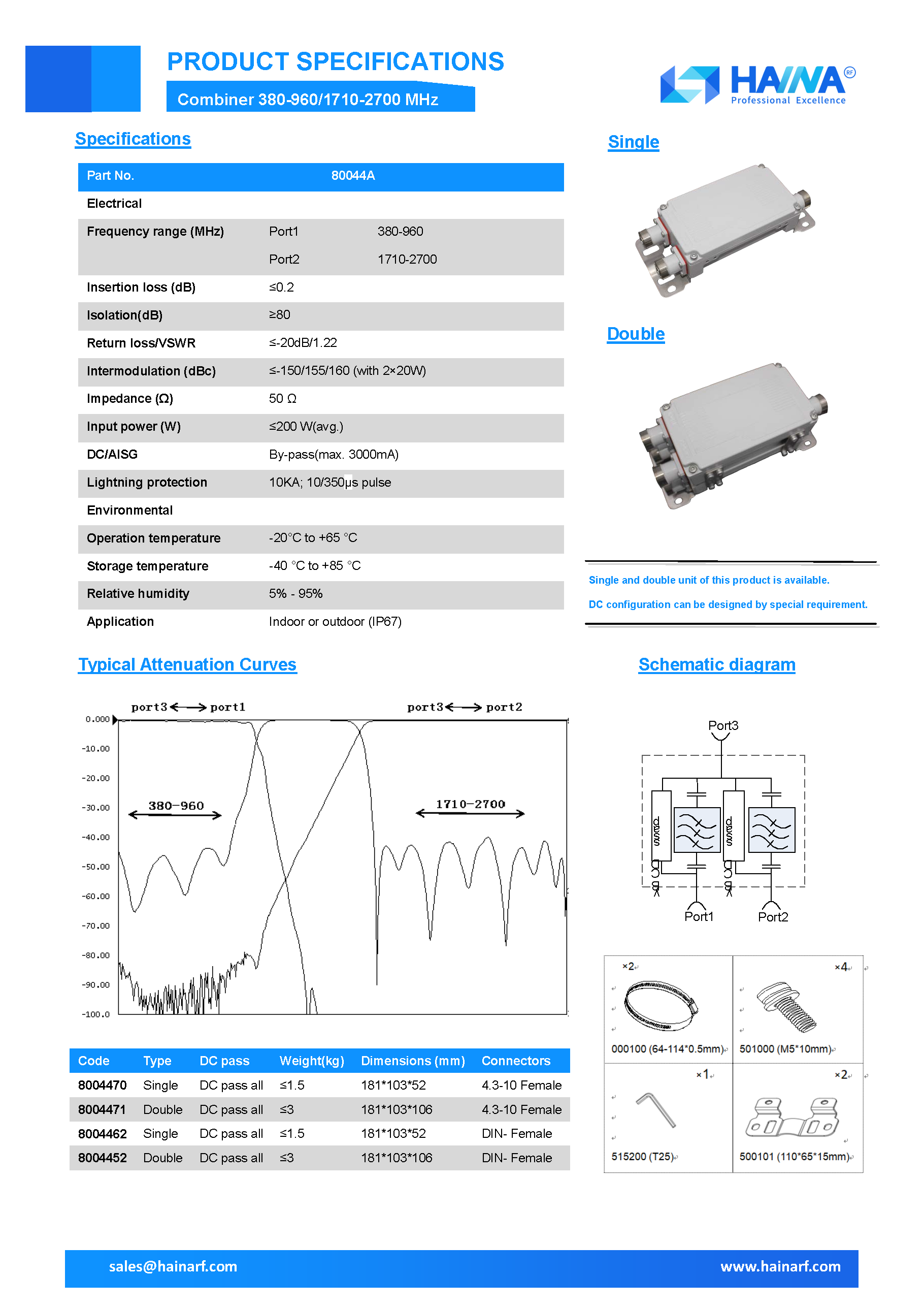 Combiner 380-960/1710-2700 MHz(80044A)