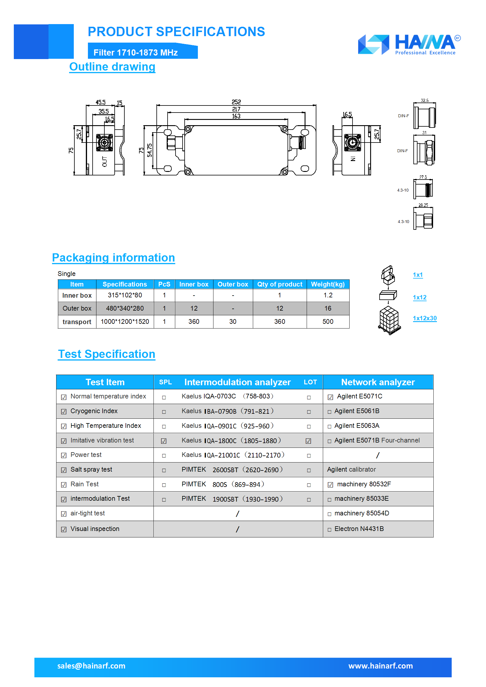 Product Description: Low PIM,anti-interference,High performance,N/DIN/4.3-10;IP67